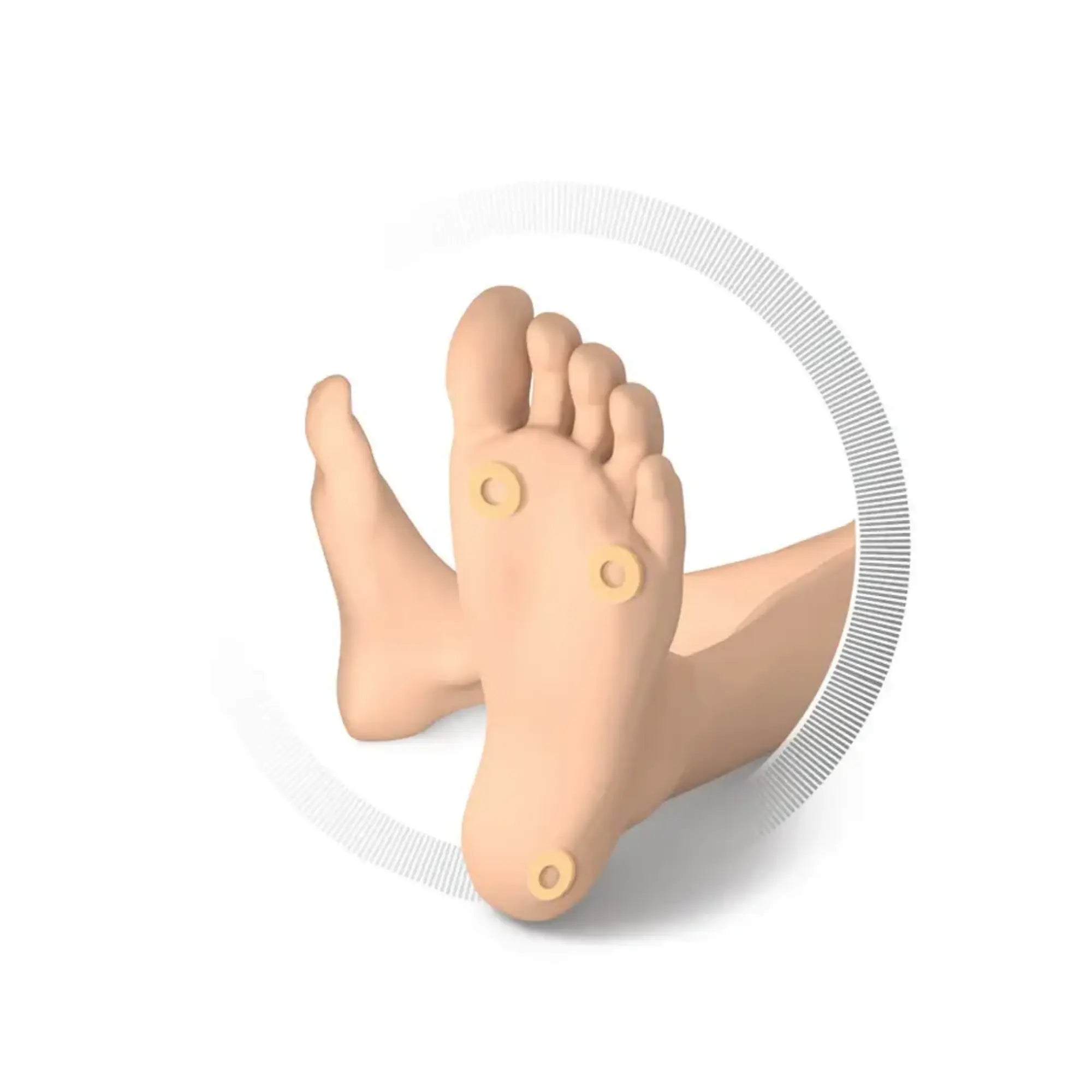 Pressure point: at the tips of the toes, on the toes, under the toes, between the toes.