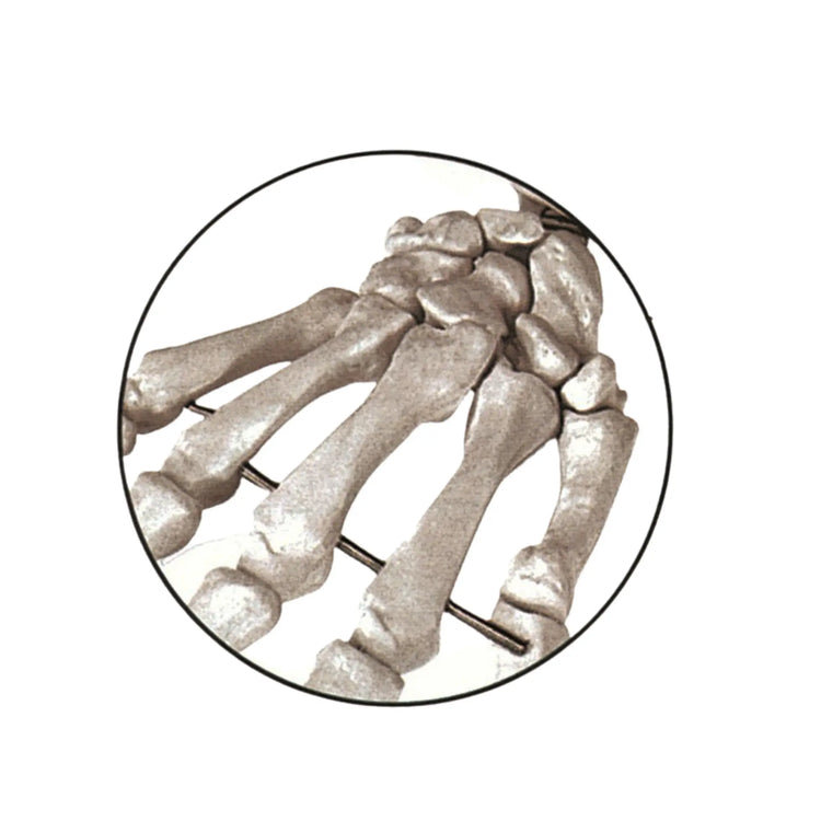 Life-size replica of a human skeleton, showing the various parts of the skeleton in great detail. Hand assembled for greater detail and longer life. The main joints are hinged; the upper and lower limbs can be detached easily. The following parts are removable: skull cap, skull, jaw, arms, legs. Supplied with a 5-caster stand.