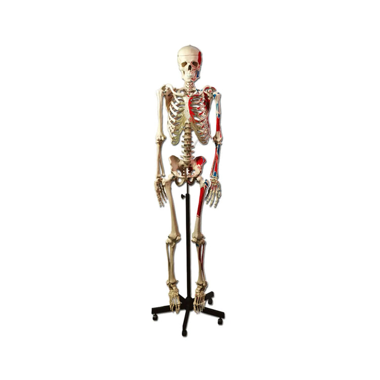 Life-size human skeleton 170cm with muscles on left side