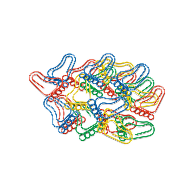 Feet to hold onto. Colorful foot-shaped paper clips, simply more effective than the standard version. Comes in 5 assorted colors.